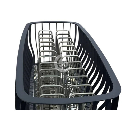 Каменка изготовлена из высококачественной матовой нержавеющей стали AISI 304 с декоративными элементами из ясеня.