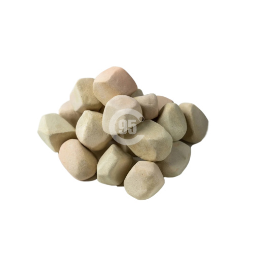Керамические камни для бани изготовлены вручную по инновационной технологии из экологически чистых материалов и подходят для любых типов печей. Камни закаливаются при температуре 1300 °C. Благодаря этому они устойчивы к экстремальным температурам и отличаются высокой износостойкостью. Сроки эксплуатации керамических камней в 3−4 раза превышают сроки эксплуатации природных камней. Благодаря оптимальному размеру горячий воздух легко циркулирует с нижних горячих слоев в верхние, что приводит к быстрому нагреву каменки.